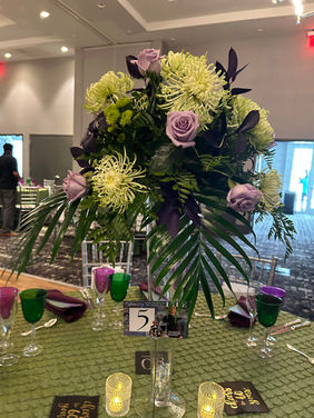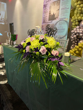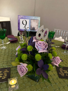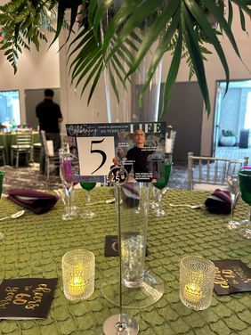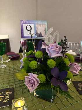 This surprise celebration combined two major events in the lives of this couple. The challenge was to combine both into one event successfully while combining their favorite colors green, blue and purple. We provided event planning, logistics support, vendor and hotel, design support for invitations, RSVPs, table design including linens, flowers, printing and promotional services, day of event staff, and specialty gifts.